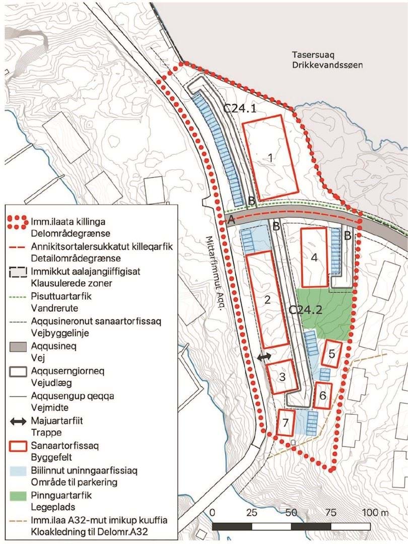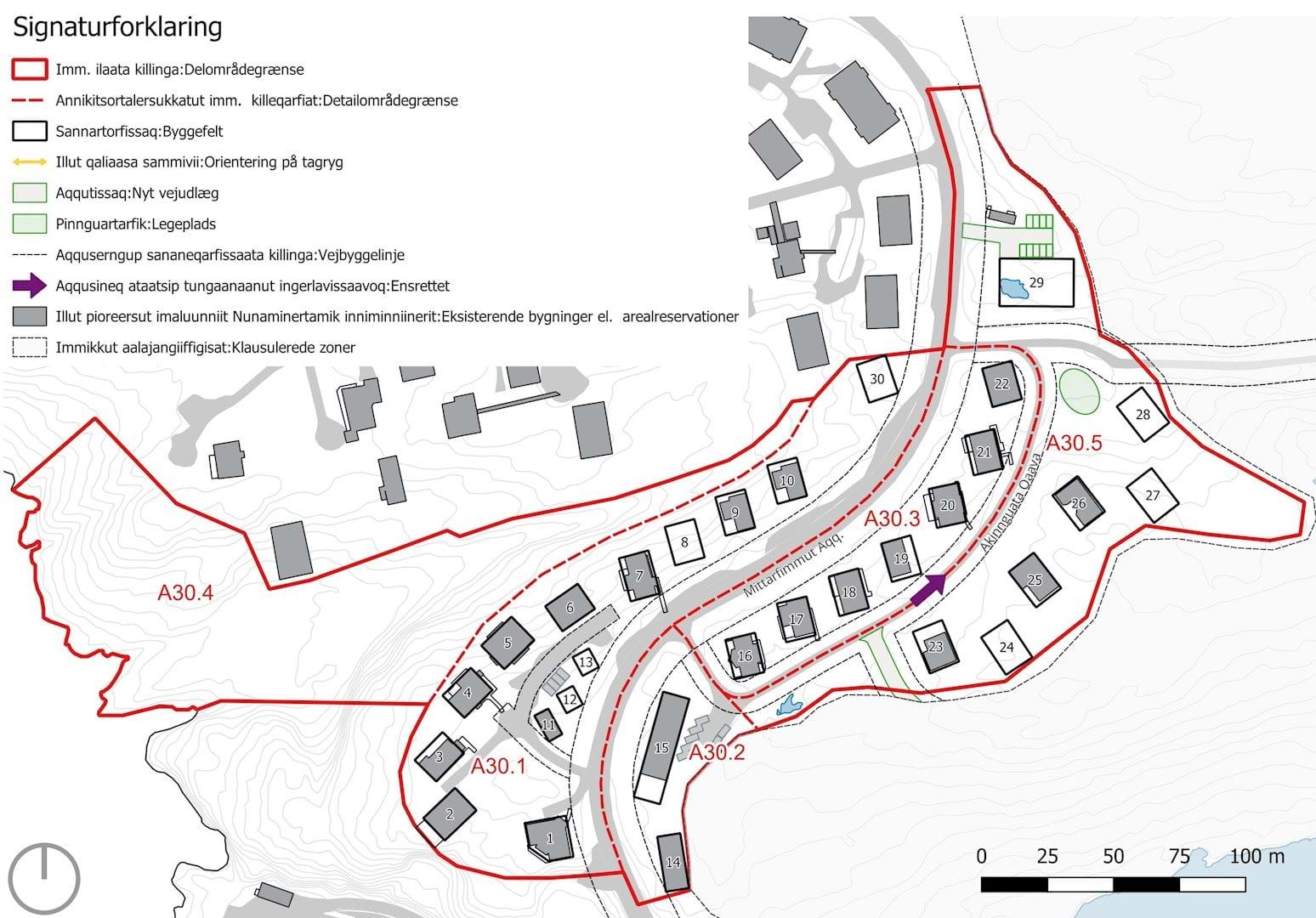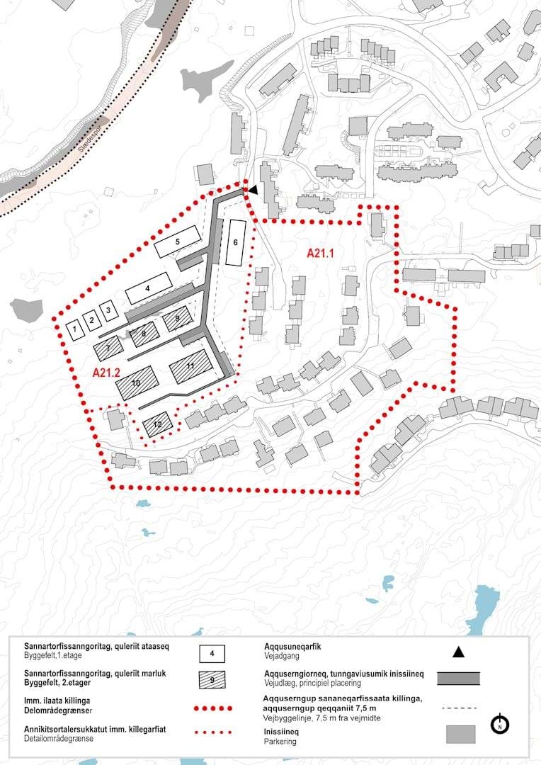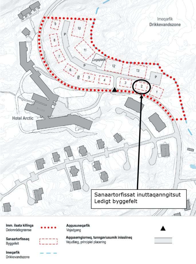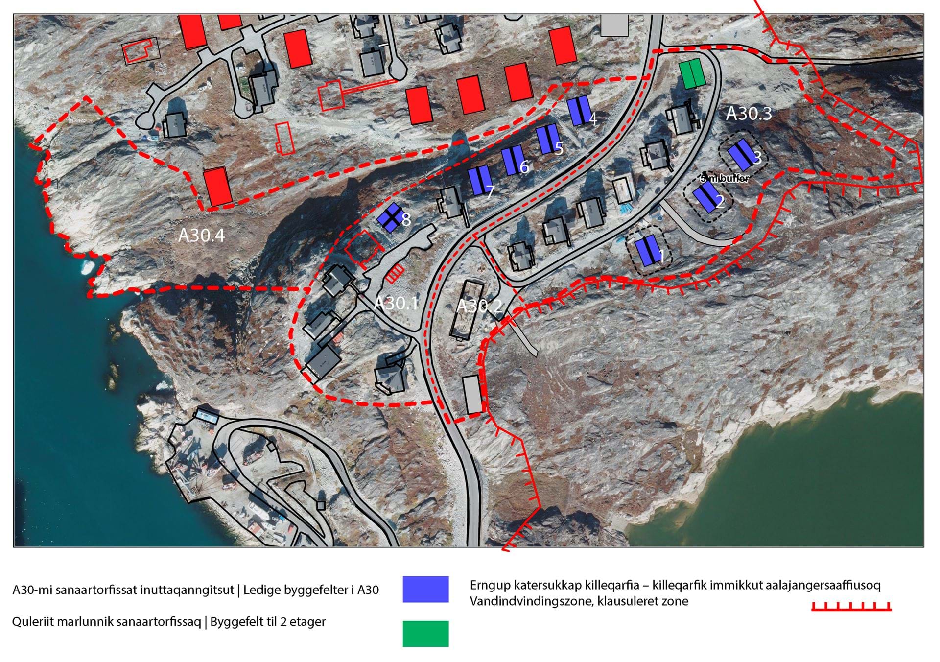 I forbindelse med udarbejdelsen af plangrundlaget, udlægges der 3 nye nummerede byggefelter på den anden side af vejen Akinnguata Qaava. Byggefelterne vil blive placeret langs vejen, der ligger i udkanten af vandspærrezonen.
