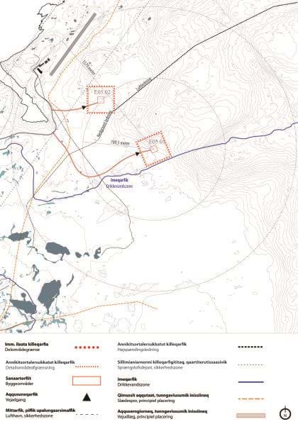 Fastlæggelse af overordnede og detaljerede bestemmelser for nyt delområde for at muliggøre et midlertidigt sprængstofdepot i detailområde E05.1 og E05.2 i forbindelse med anlægsarbejdet for udvidelse af lufthavnen i Ilulissat, samt planlægning for et permanent sprængstofdepot i detailområde E05.1.