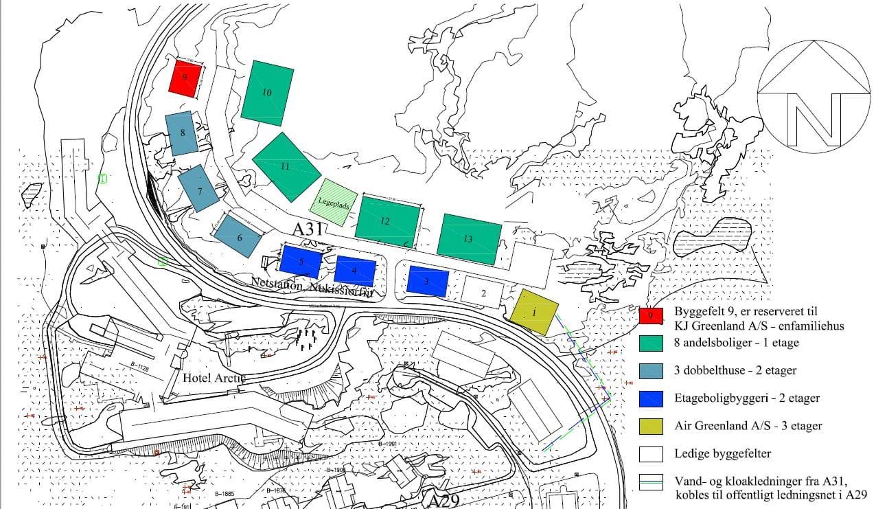 KJ Greenland ansøger om ændring af størrelse og antal på byggefelter i delområde A31, Ilulissat.